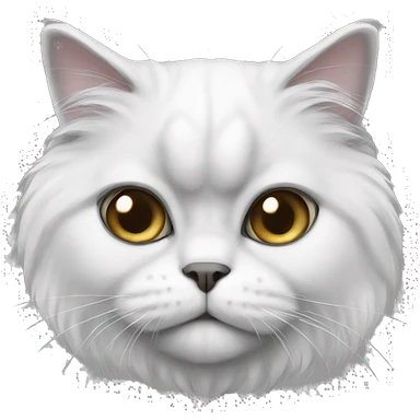 fluffy Persian cat. color: white and head, ears and area in the area of the right eye gray-red color. eye amber color. nose pink color emoji