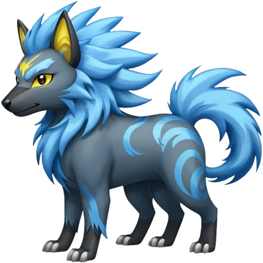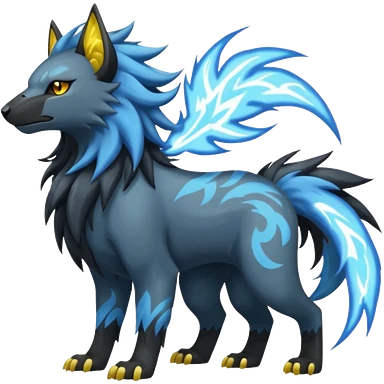 Storm-Grey Cloud-Swirled Heavy-Maned Thunder-Marked Electric Luxray-Manectric-hybrid-creature (full body) emoji