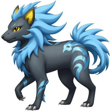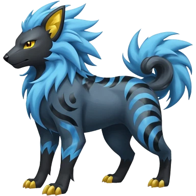 Shiny Dark Edgy Black And Blue Suicune-Manectric-Umbreon-Salandit-Wolf-Fakémon-hybrid-creature (full body) emoji
