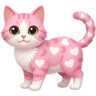 make a pink cat fluffy with fluf with hearts pink and hearts white and pink cats emoji