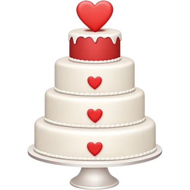 white wedding cake with two tiers and hearts emoji