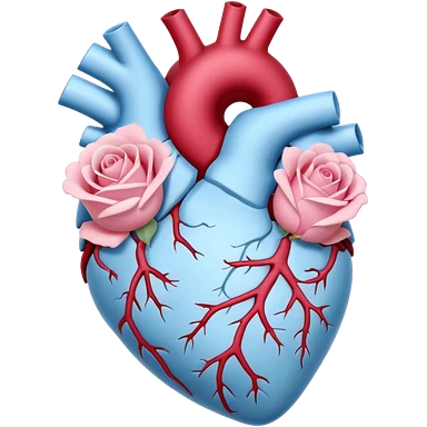 White and sky blue Anatomical heart with light pink rose without leaves emoji | AI Emoji Generator