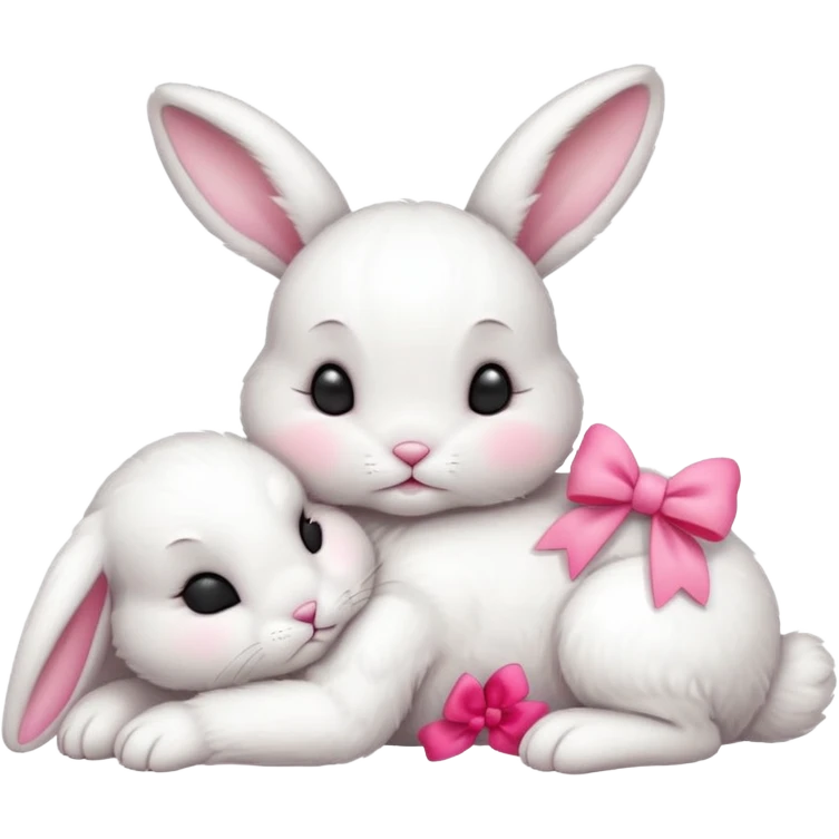 White baby bunny with pink bows on ears sleeping emoji | AI Emoji Generator