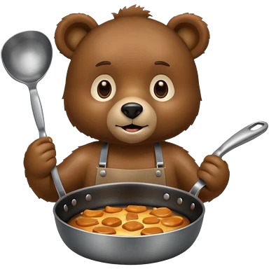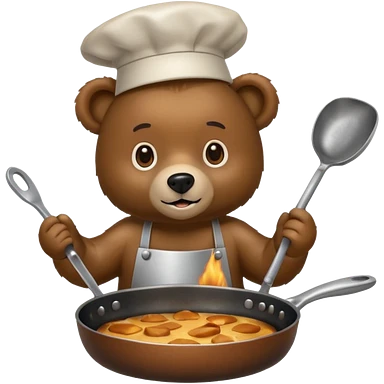 A bear cooking an iphone in a frying pan emoji