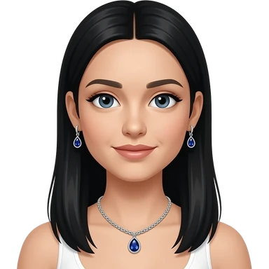 white girl with straight black hair with jewelry like pandora and swarovski emoji