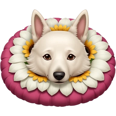 White Belgian shepherd dog with Brown eyes sleeping On a flowerpillow emoji