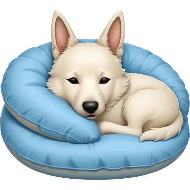 White Belgian shepherd dog with Brown eyes sleeping On a pillow emoji | AI Emoji Generator