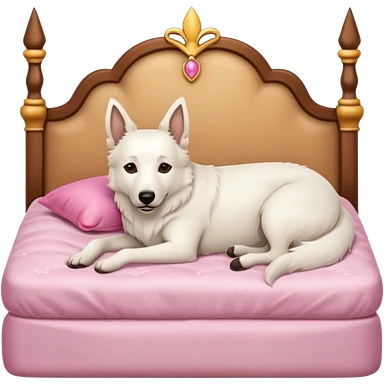 White Belgian shepherd dog with Brown eyes sleeping On a Princessbed emoji
