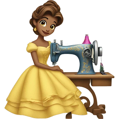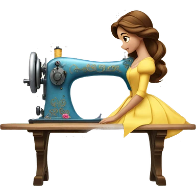White Belle from beauty and beast sewing with sewing machine emoji | AI Emoji Generator