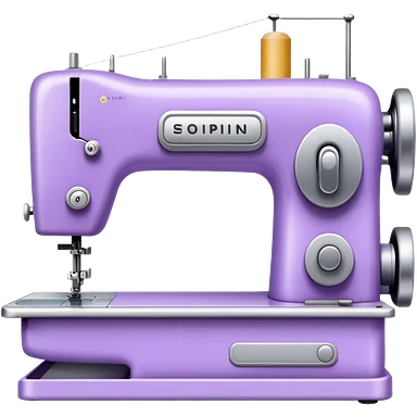 Sewing icon, sewing machine with thread, visible needle, spools of thread, fabric pieces, and scissors, a piece of clothing or textile in progress, minimalistic style, clean lines, transparent background. emoji