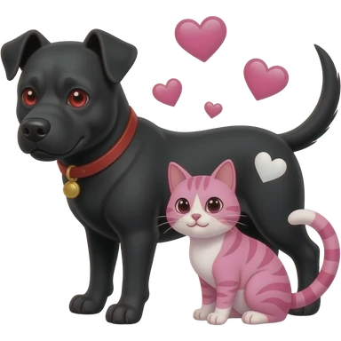 make a black evil dog with red eyes and a cat pink with hearts pink and hearts white emoji