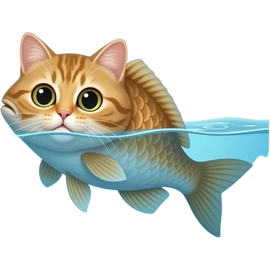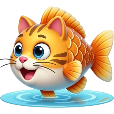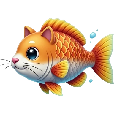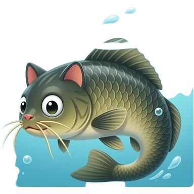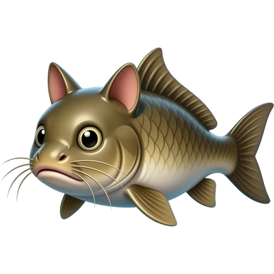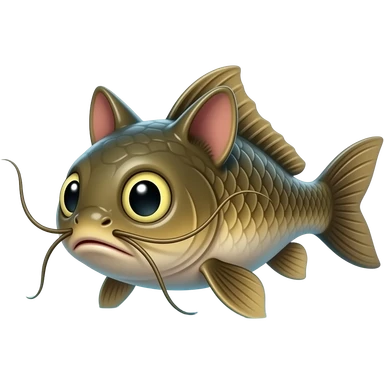 A humorous, exaggerated literal interpretation of “Catfish”. A fish with cat features like whiskers and ears swimming in water. Cartoonish, playful, colorful, 3D illustration, funny concept. Clean background, center composition, no text, no watermark. emoji