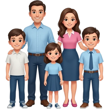 Hispanic family of five: mom, dad, two sons, one daughter in the middle, all with dark brown hair emoji