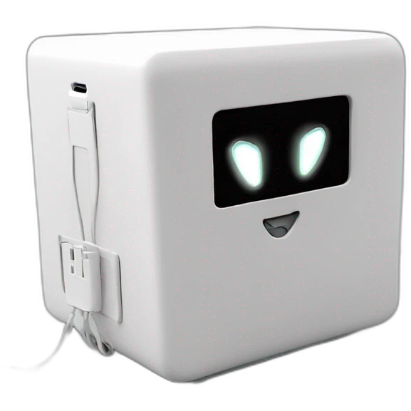 white box (like a apple TV) connected with block cables indicated by blinking LED lights. THe box has a heartbeat label on it robot emoji | AI Emoji Generator