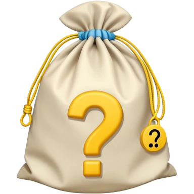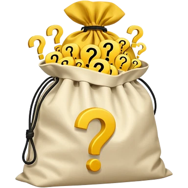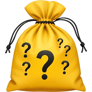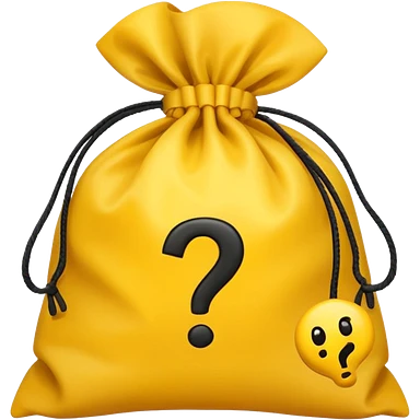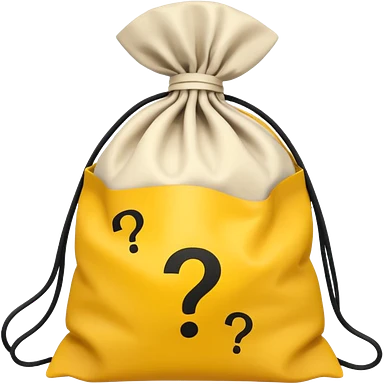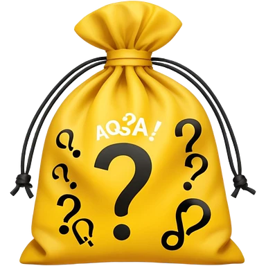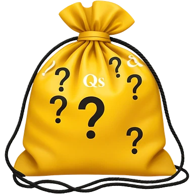 tied bag printed with q&a overstuffed with yellow question marks emoji