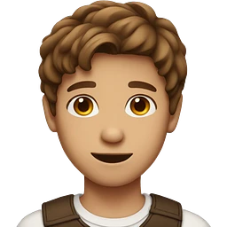 brown hair boy, goatee middle part, green eyes, muscular emoji
