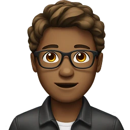 boy with a stripe in the middle hairstyle, brown hair and a black sweater, brown eyes and white skin emoji