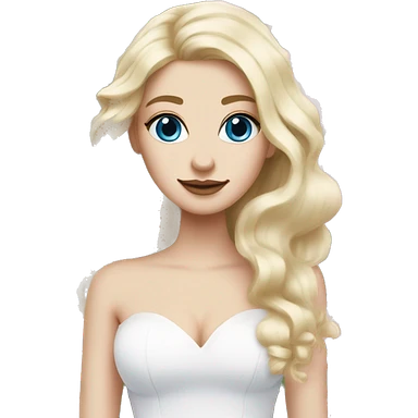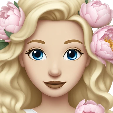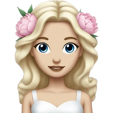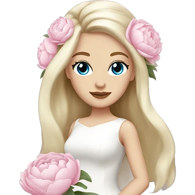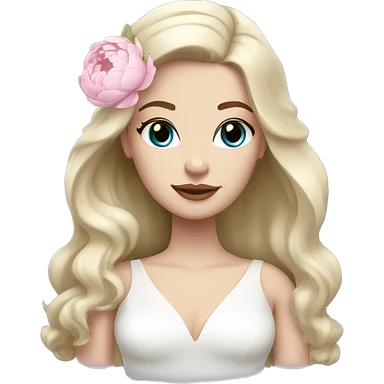 White bride with long light blonde hair and blue eyes with light pink peonies in hair white skin emoji | AI Emoji Generator