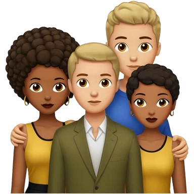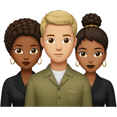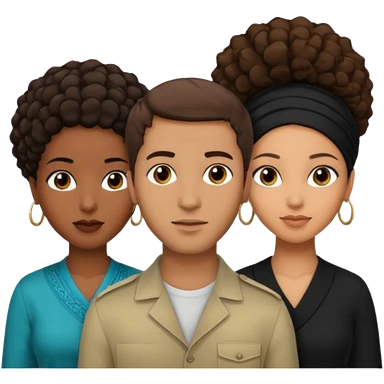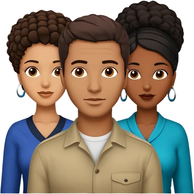 White brunette, American man with two women both are African one is light skin black and one is medium tone black emoji | AI Emoji Generator