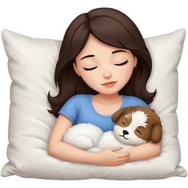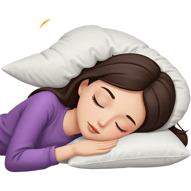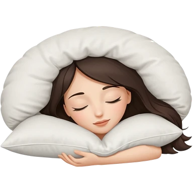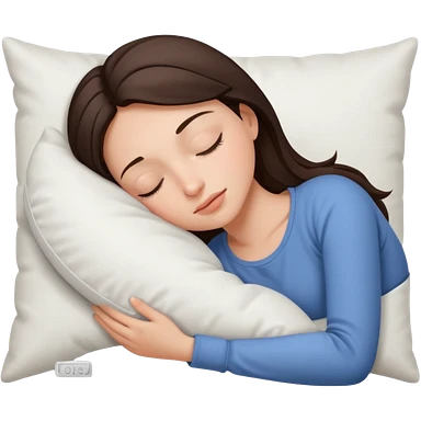 a beautiful brunette girl sleeping with a white pillow under her head emoji