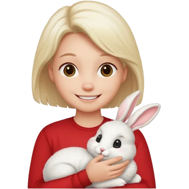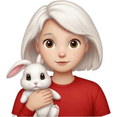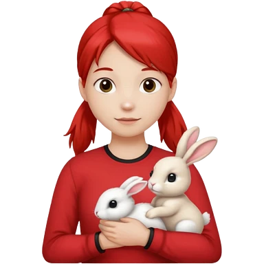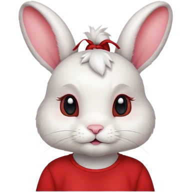 white bunny, pet lover, red shirt, pony tail. emoji | AI Emoji Generator