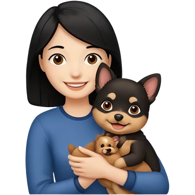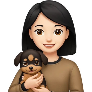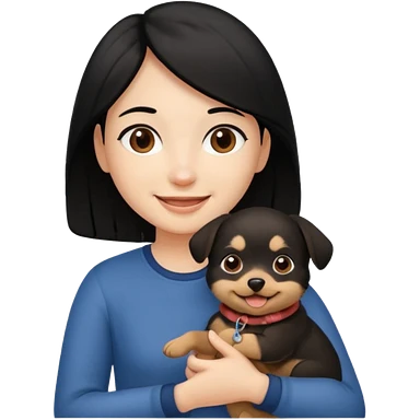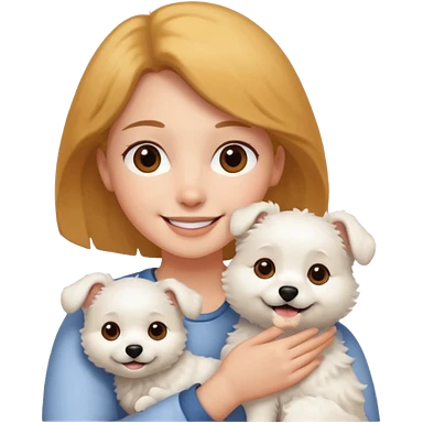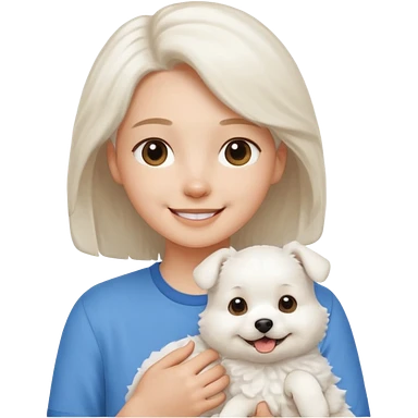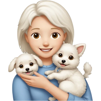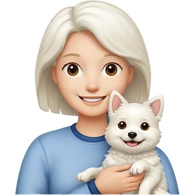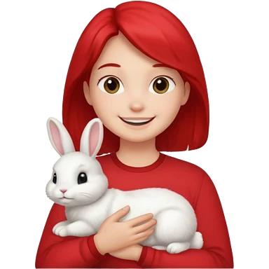 white large bunny, pet lover, red shirt, pony tail. emoji