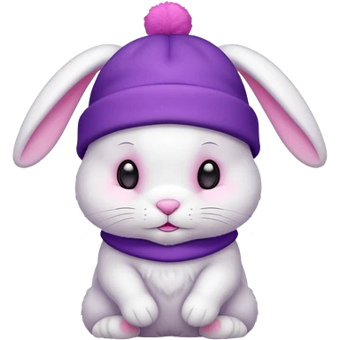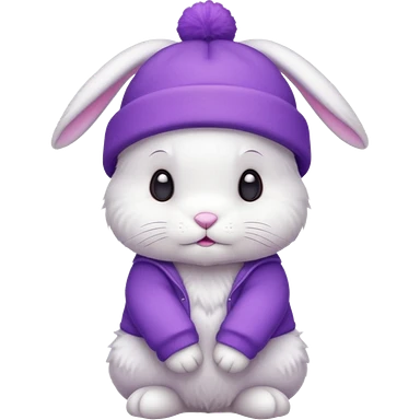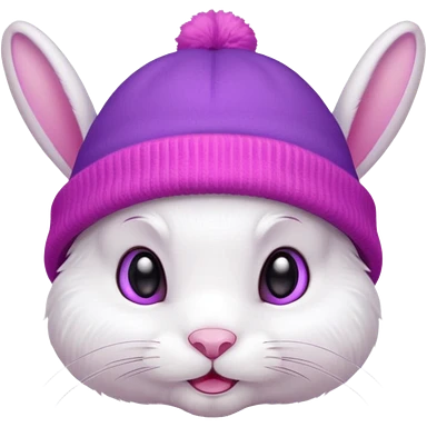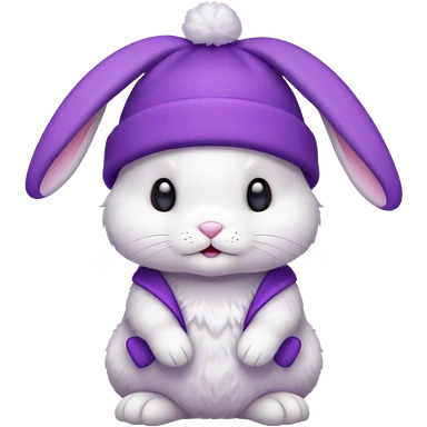 white Bunny wear a purrple benie hat emoji | AI Emoji Generator