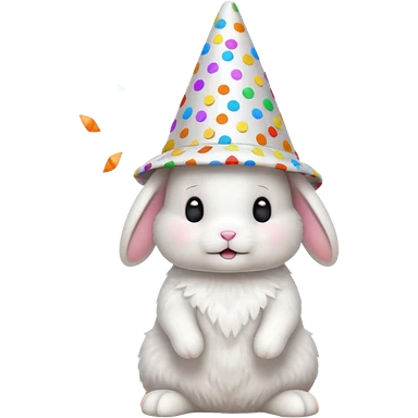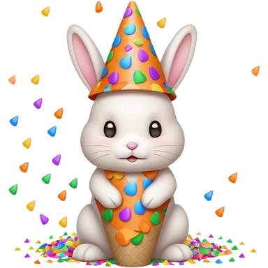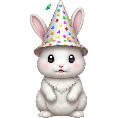 White bunny wearing cone hat with confetti. emoji | AI Emoji Generator