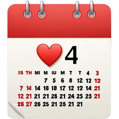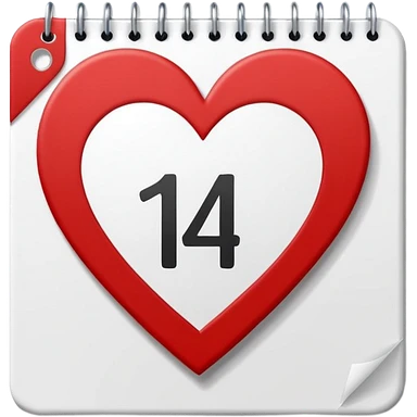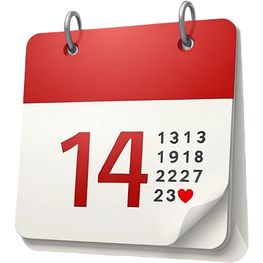 red and white calendar with the number "14" in a heart emoji