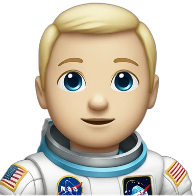 white guy astronaut with purple suit, blue eyes, short purple hair and one macbook emoji