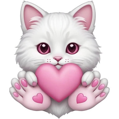 white cat hands holding a pink heart emoji | AI Emoji Generator