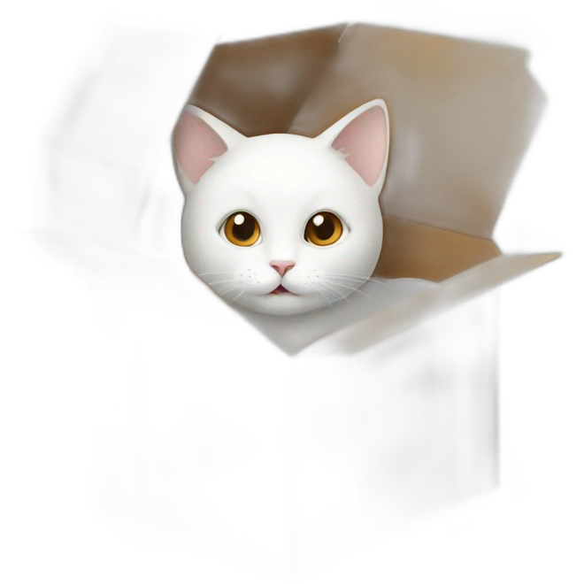 White cat hiding inside a brown box emoji | AI Emoji Generator