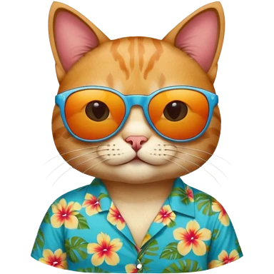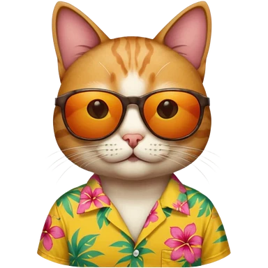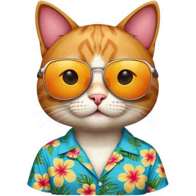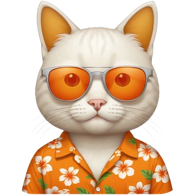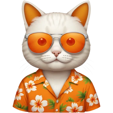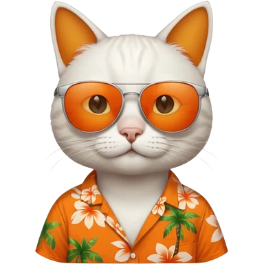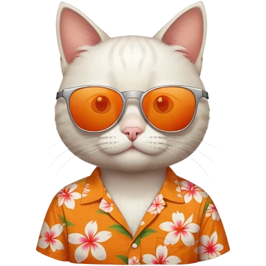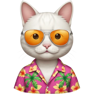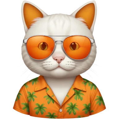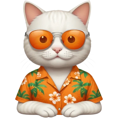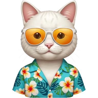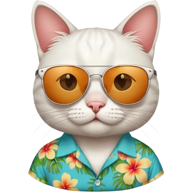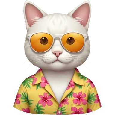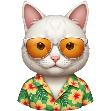 white Cat – relaxed with sunglasses and bright aloha shirt emoji | AI Emoji Generator