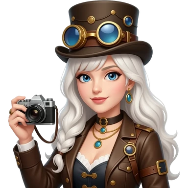 steampunk white haired lady with a camera wearing a steampunk top hat emoji