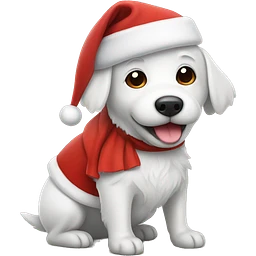 Black and white dog with a santa clause hat on shoveling snow emoji