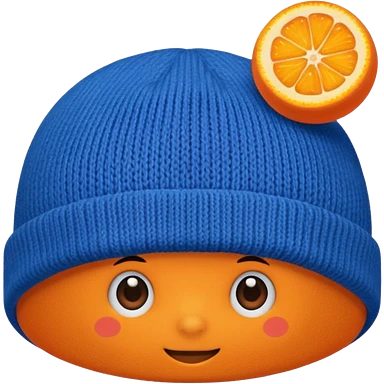 a blue beanie with an orange rim, and an orange puff dot at the top emoji