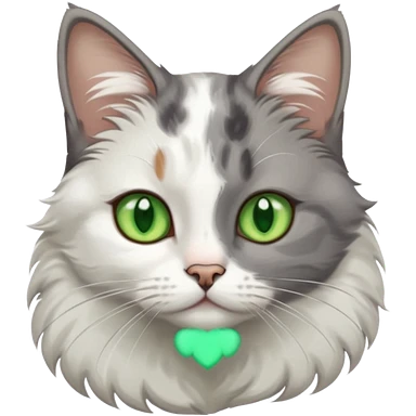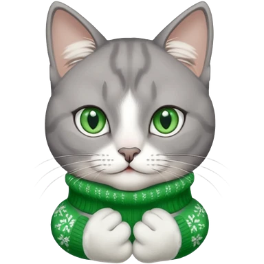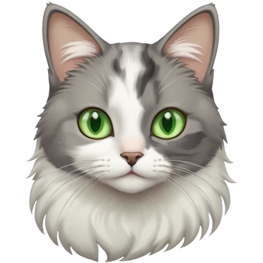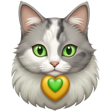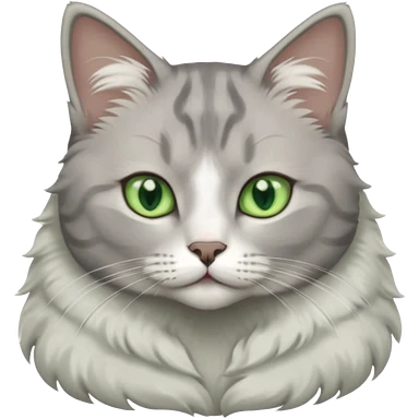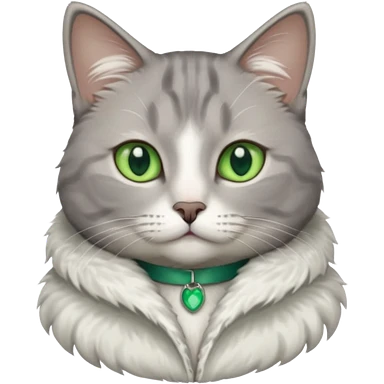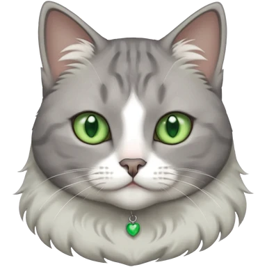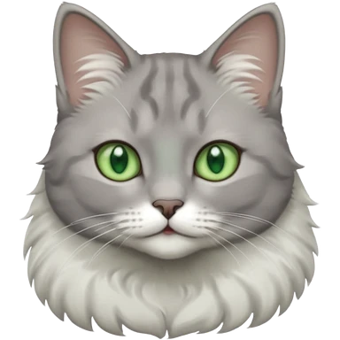 beautiful female grey cat with green eyes, white paws and white chest emoji