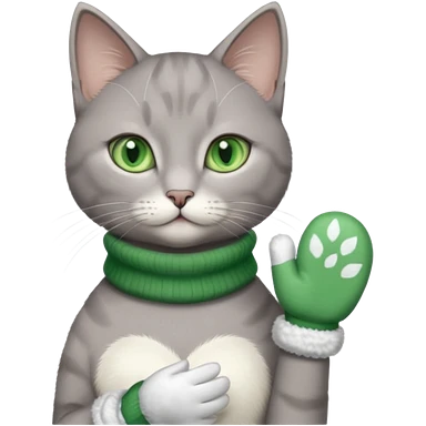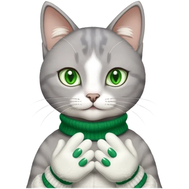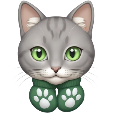 beautiful female grey cat with green eyes, white mittens and white chest emoji