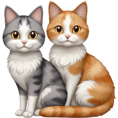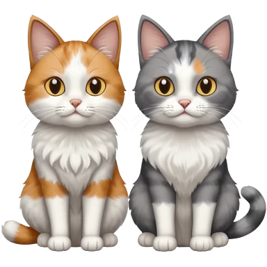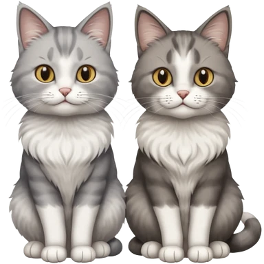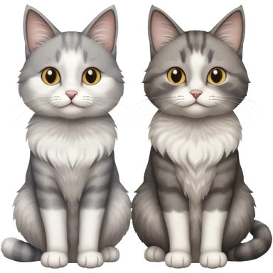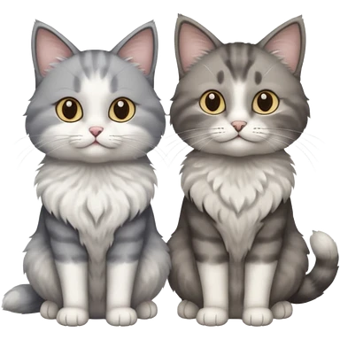 a realistic looking very fluffy grey and white cat with grey legs and white paws, sitting next to another cat emoji