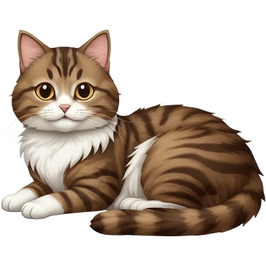 Dark brown tabby dark brown black spotted with white paws cat with brown-green eyes emoji