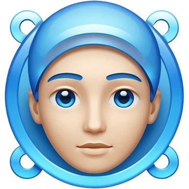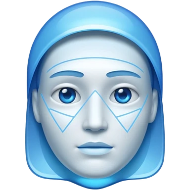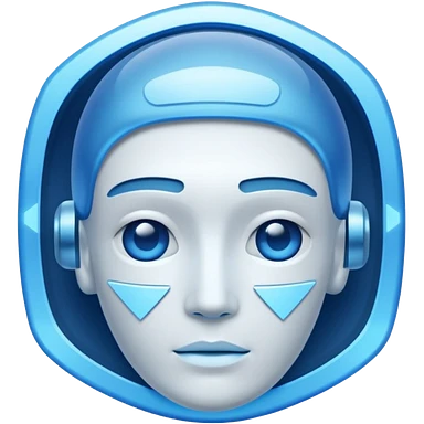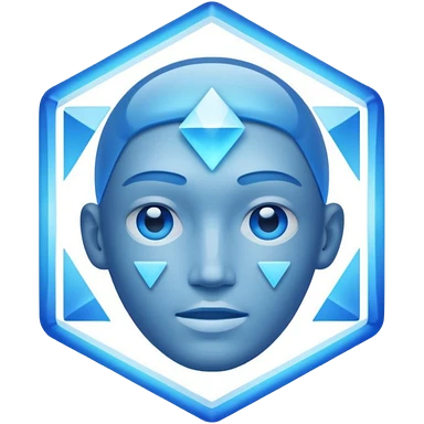 A non-human presence appearing as a glowing blue-white holographic interface with floating geometric shapes or a faint head-and-shoulders outline and no physical facial features. emoji