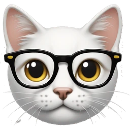 A white cat with glasses with black cover, who looks nerdy and raises its point finger emoji