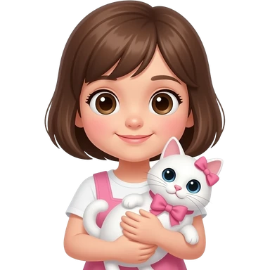 Girl holding a white cat with a pink bow emoji