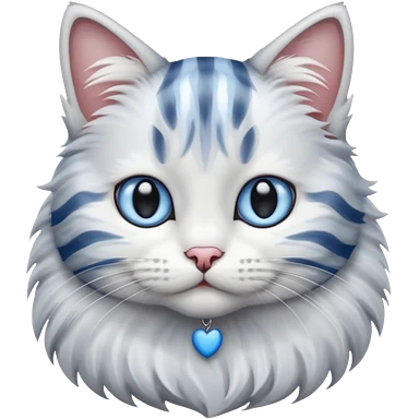 striped cat with hair in white and gray colors with blue eyes emoji