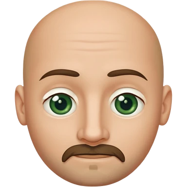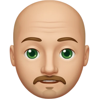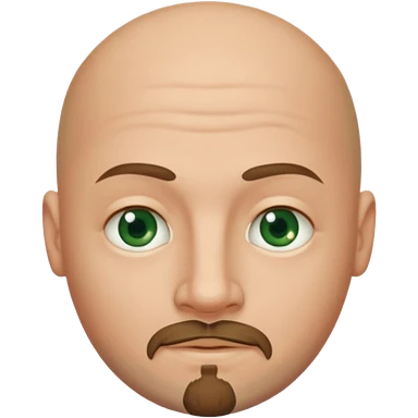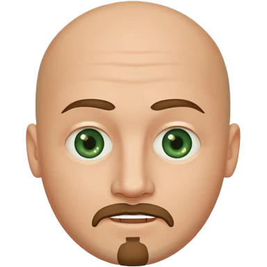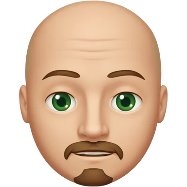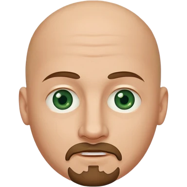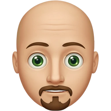 white caucasian bald man's face, with brown goatee and green eyes, oval face, rounded, big emoji