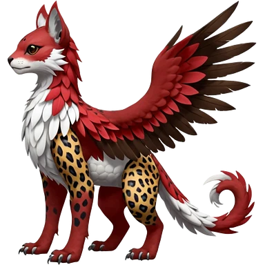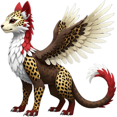 Winged hyper-realistic Feral Rare realistic edgy brown, white, red pretty beautiful handsome gorgeous aesthetic colorful vibrant Vernid-Trico-Silvally-Nargacuga-Gryphon-Leopard-fusion-hybrid-species-Fakemon-creature by LiLaiRa, splotch-rosettes fur markings, rounded ears, full body emoji