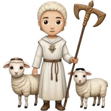 White hispánica Myself at Shepherd clothes with shepherd staff with sheep emoji