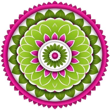 Clean crisp visual appealing seamless mandala pattern print, vivid and bright lime green, grey, white and fuchsia pink colors. Must be 4k hd, 3000x3000, DPI 3000 emoji