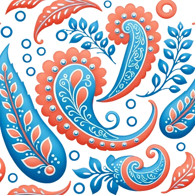 paisley motif, seamless pattern print in soft and bright Coral, pale blue, white and Bedazzled Blue colors. Must be visually appealing, 4k hd, 3000x3000, DPI 300 emoji
