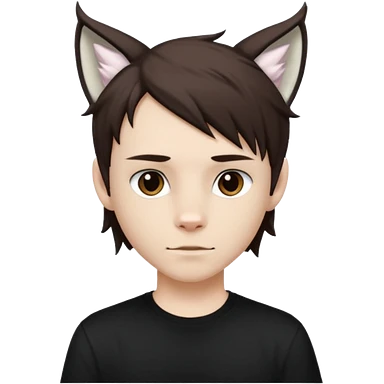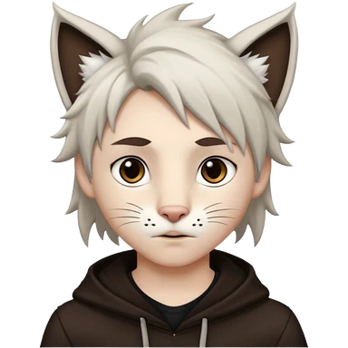 White cute boy with dark brown emo-style hair and white lynx ears emoji | AI Emoji Generator